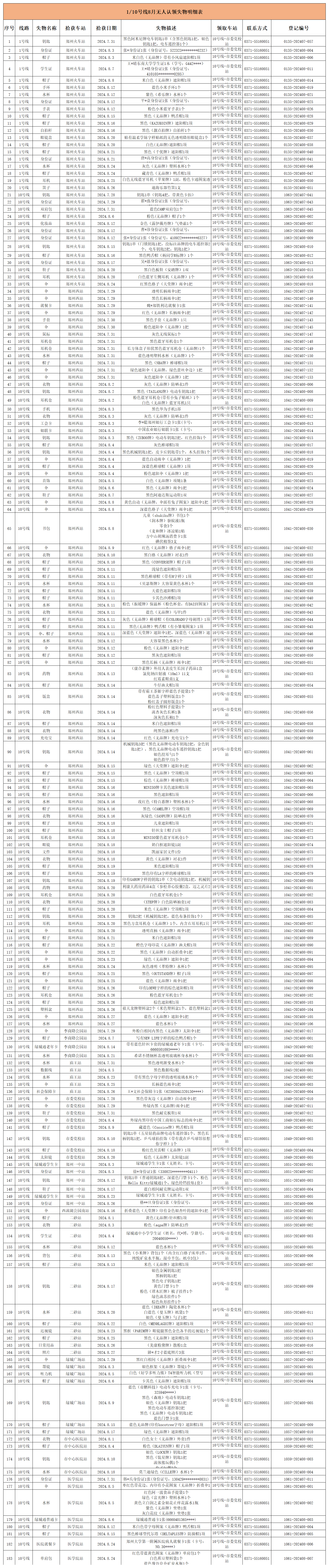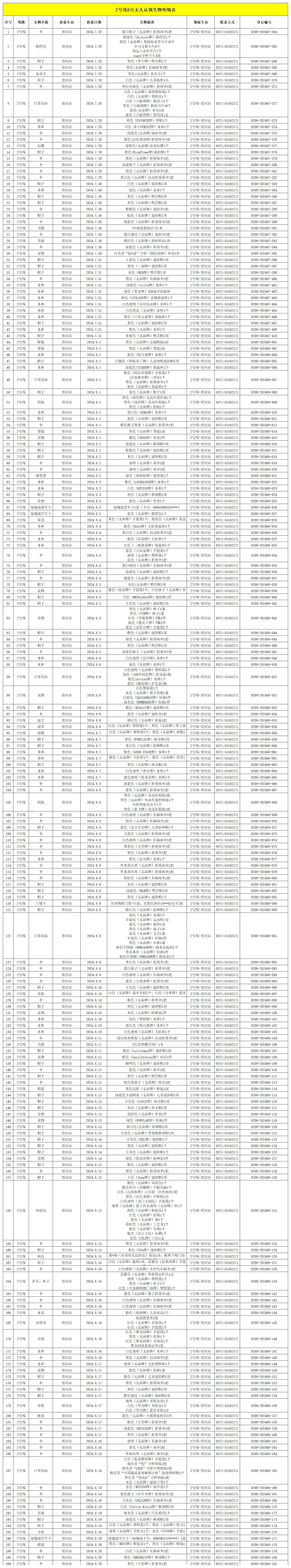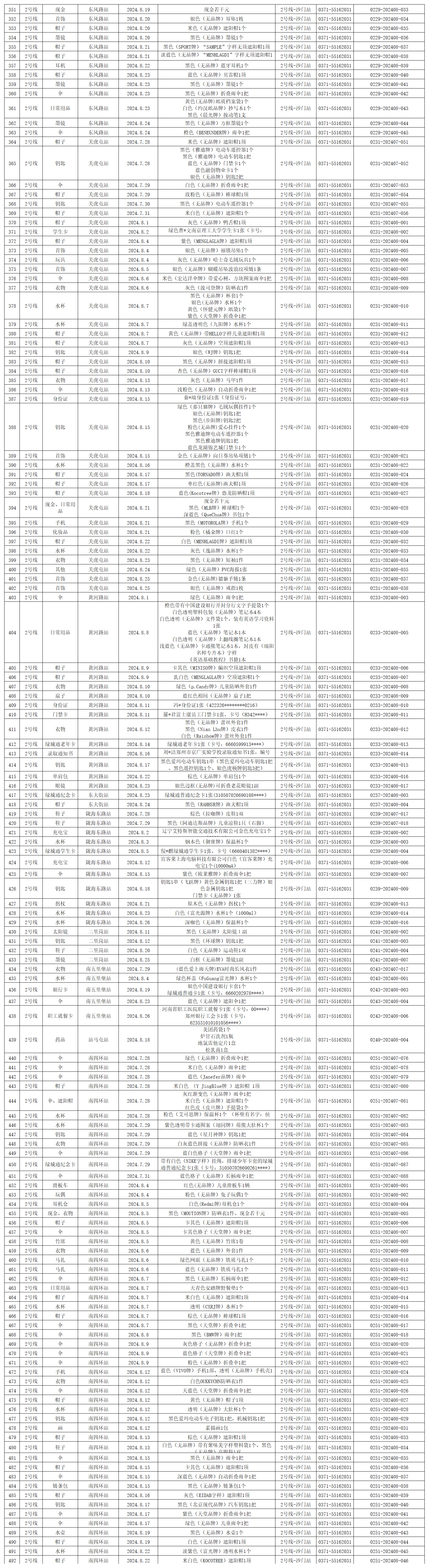 2024年7月28日—2024年8月28日車站無人認領失物情況